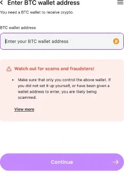 Once you’re done on the verification, you may now need to Enter your Bitcoin wallet address(see the guide below) then hit Continue