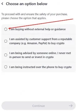 Note: Just in case that Moonpay ask the following, kindly select this option: